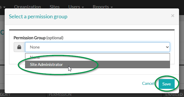 6. Select the desired Permission Group from the dropdown menu and click Save.